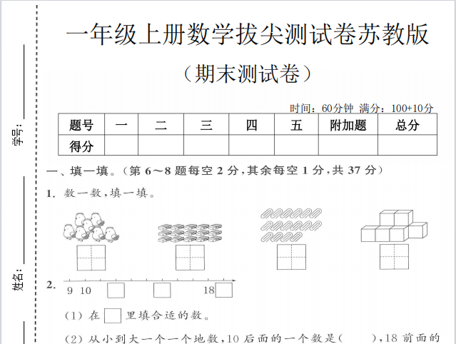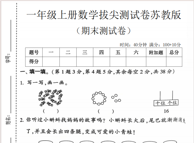 【小学数学】25秋一年级(上)数学期末测试卷《苏教版》
