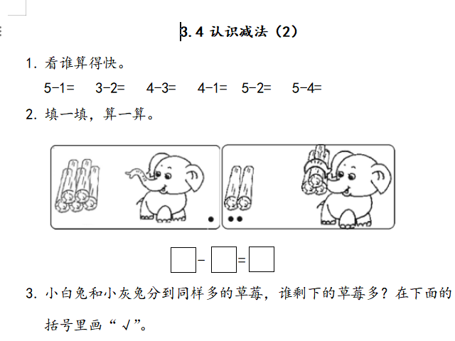 【小学数学】一年级上册34 认识减法(2)(北师大版)