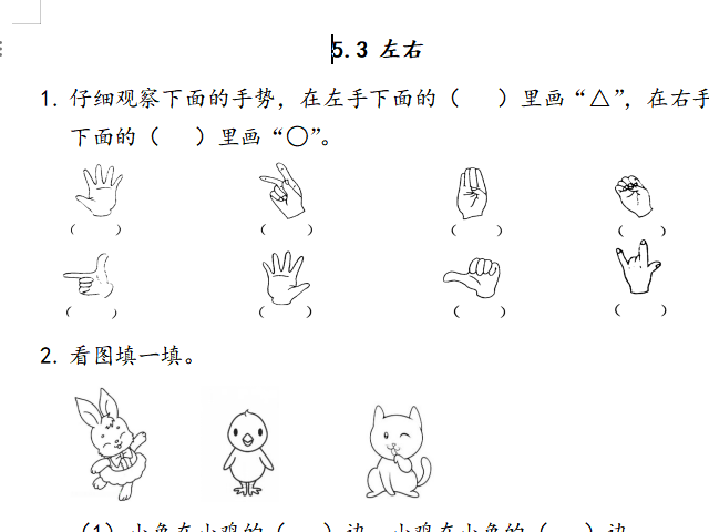 【小学数学】一年级上册53 左右(北师大版)
