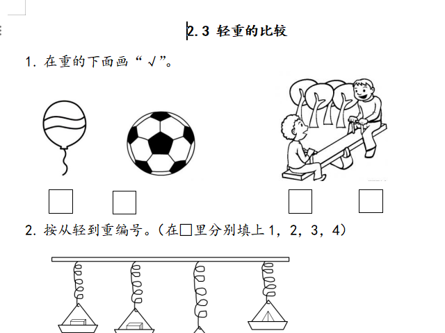【小学数学】一年级上册23 轻重的比较(北师大版)