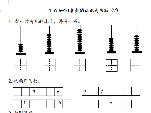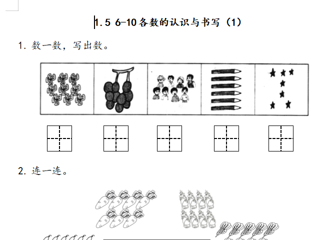 【小学数学】一年级上册15 6_10各数的认识与书写(1)(北师大版)