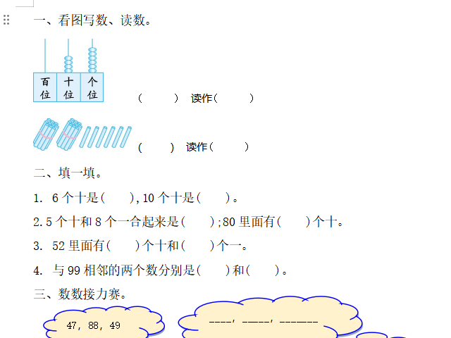【小学数学】一年级下册81 认识100以内的数(北京版)