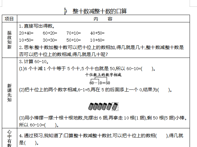 【小学数学】一年级下册19 整十数减整十数的口算(北京版)