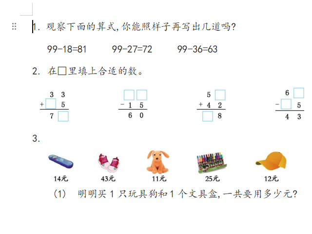 【小学数学】一年级下册82 100以内加减法(北京版)