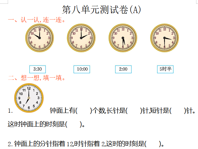 【小学数学】一年级上册第2单元测试卷(A)(北京版)