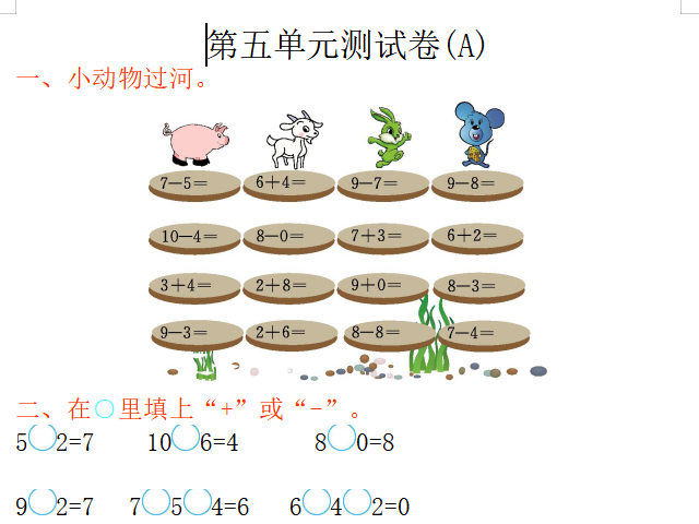 【小学数学】一年级上册第5单元测试卷(A)(北京版)