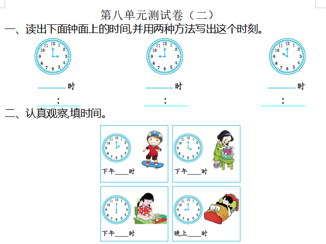 【小学数学】一年级上册_第8单元测试卷(二)(北师大版)
