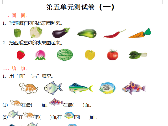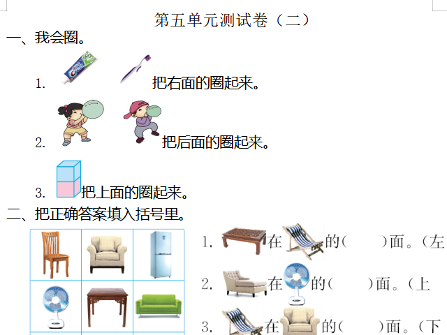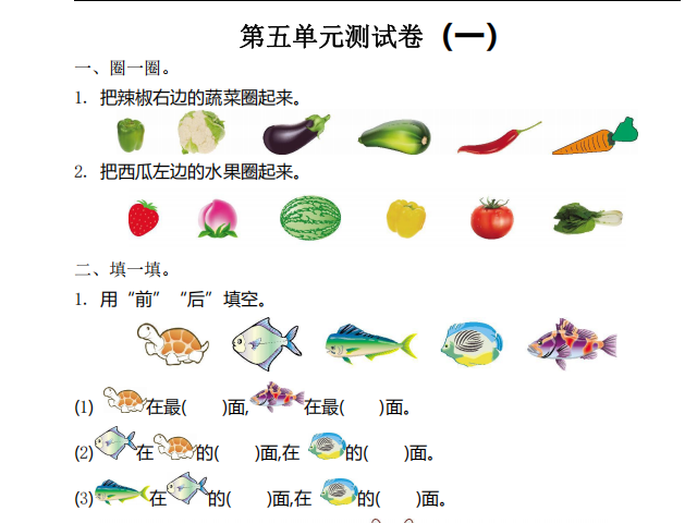 【小学数学】一年级上册_第5单元测试卷(一)(北师大版)