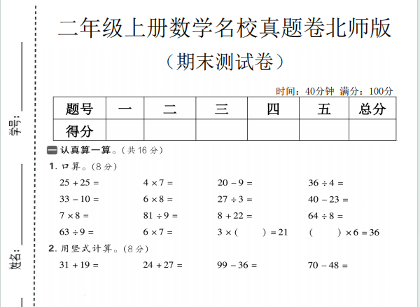 【小学数学】25秋二年级(上)数学期末名校真题卷2《北师版》