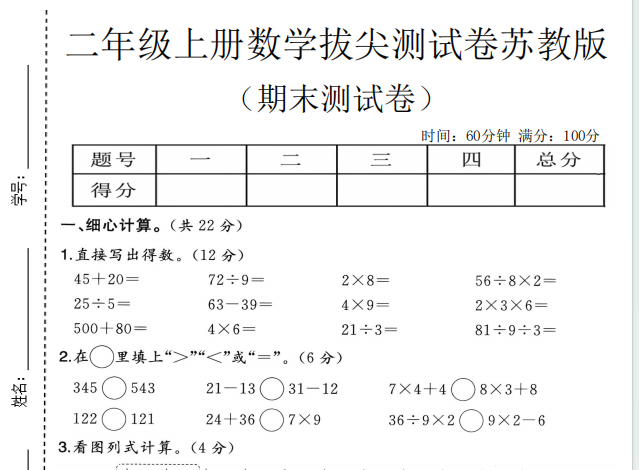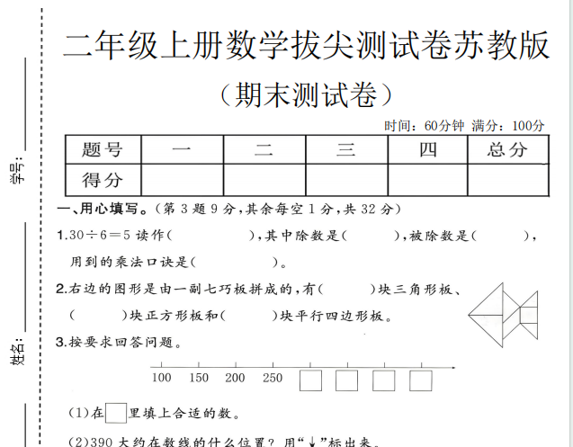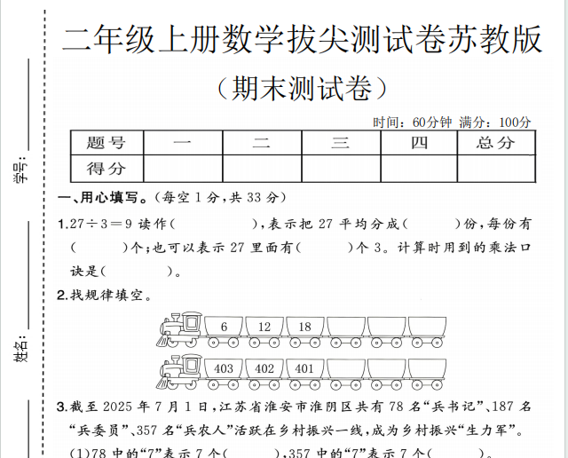 【小学数学】25秋二年级(上)数学期末拔尖测试卷7《苏教版》