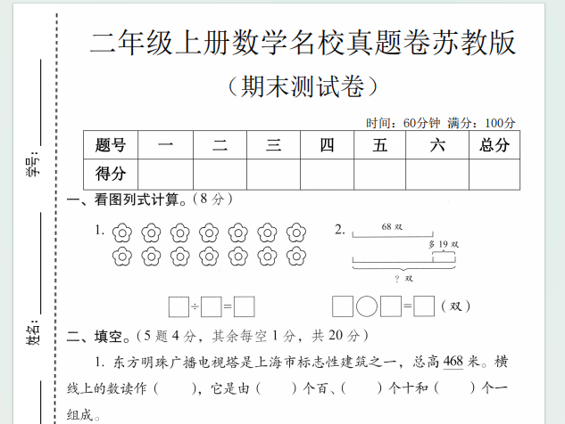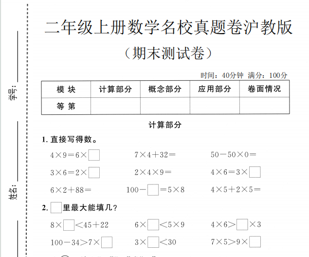 【小学数学】25秋二年级(上)数学期末名校真题卷1《沪教版》1
