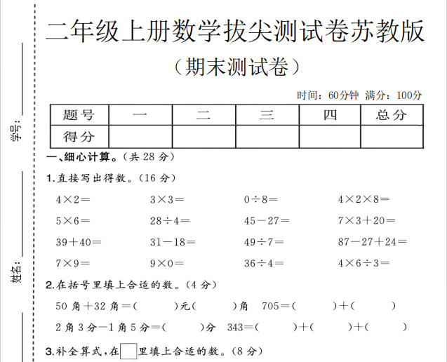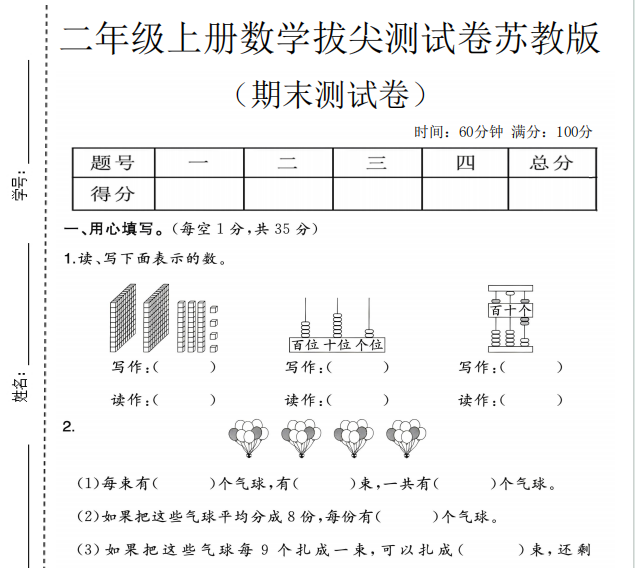 【小学数学】25秋二年级(上)数学期末拔尖测试卷5《苏教版》