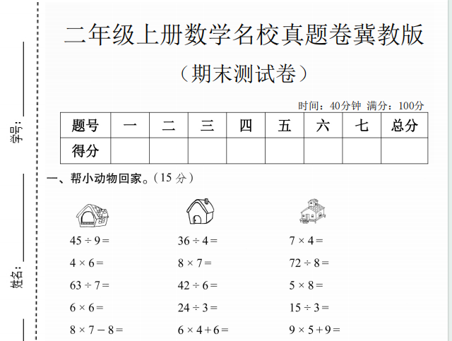 【小学数学】25秋二年级(上)数学期末名校真题卷2《冀教版》