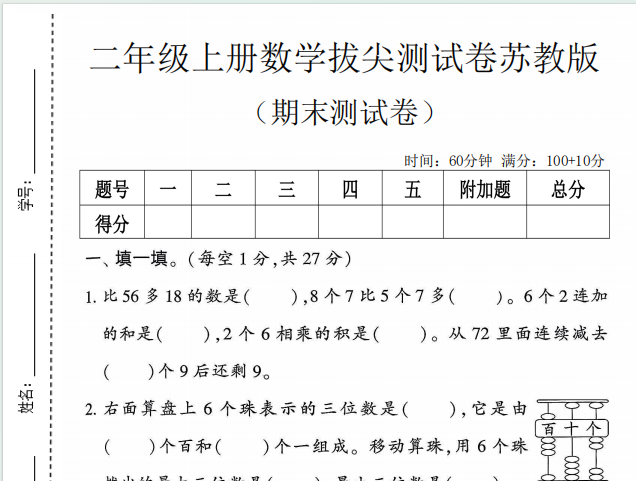 【小学数学】25秋二年级(上)数学期末拔尖测试卷2《苏教版》