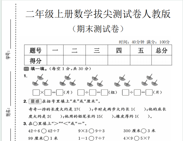 【小学数学】25秋二年级(上)数学期末拔尖测试卷5《人教版》