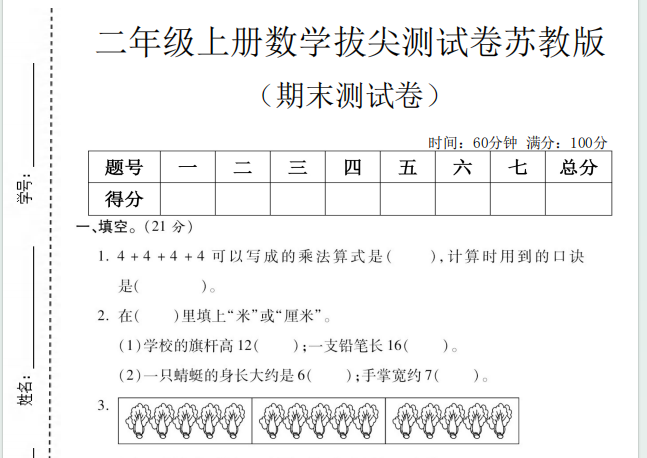 【小学数学】25秋二年级(上)数学期末拔尖测试卷4《苏教版》