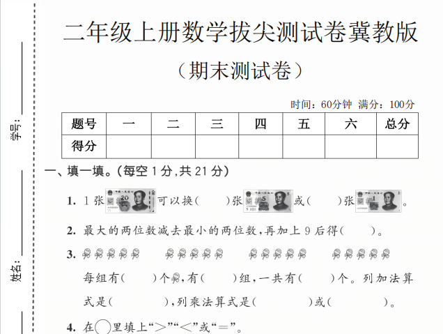【小学数学】25秋二年级(上)数学期末拔尖测试卷《冀教版》