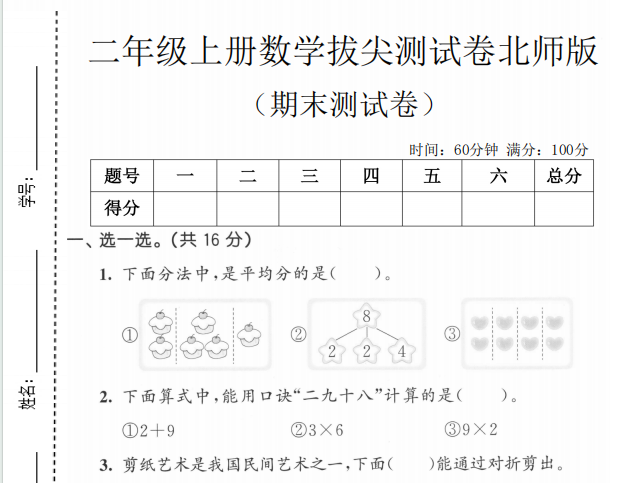 【小学数学】25秋二年级(上)数学期末拔尖测试卷2《北师版》