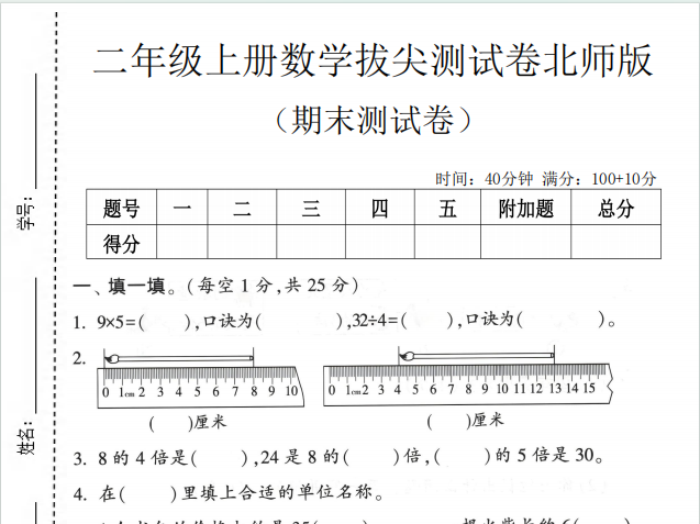 【小学数学】25秋二年级(上)数学期末拔尖测试卷1《北师版》