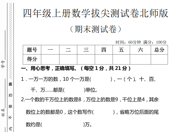 【小学数学】25秋四年级(上)数学期末拔尖测试卷-两个数《人教版》