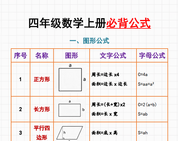 【小学数学】25秋四年级(上)数学必背公式图形版