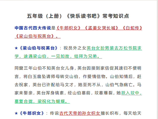 【小学语文】25秋五年级(上)语文《快乐读书吧》常考知识点