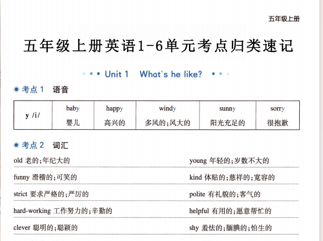 【小学英语】25秋五年级(上)英语1-6单元考点归类速记《PEP版》