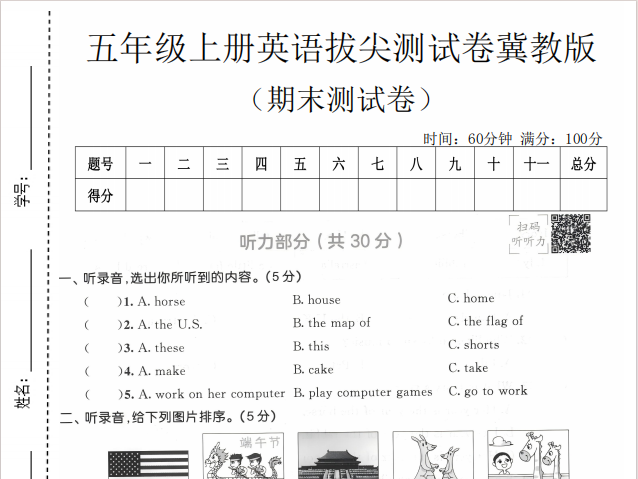【小学英语】25秋五年级(上)英语期末拔尖测试卷1《冀教版》