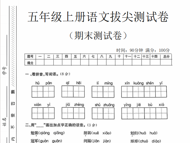 【小学语文】25秋五年级(上)语文期末测试卷6