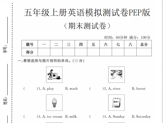 【小学英语】25秋五年级(上)英语期末测试卷1《PEP版》