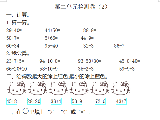 【小学数学】一年级下册第二单元检测卷(2)(北京版)