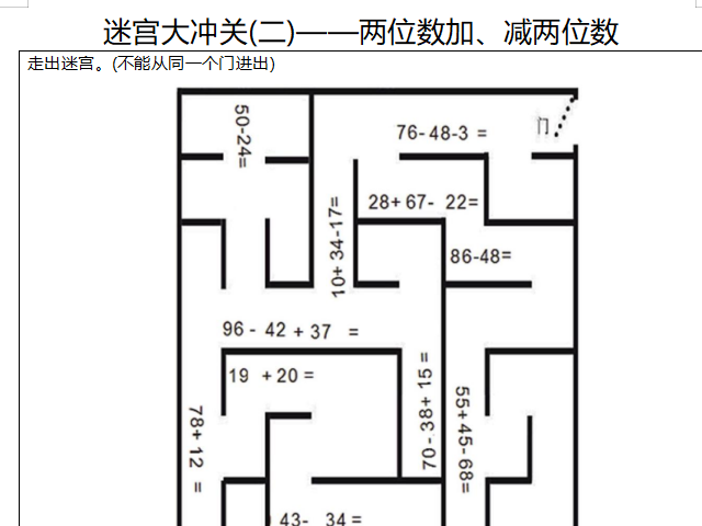 【小学数学】一年级下册迷宫大冲关(二)——两位数加、减两位数(北京版)