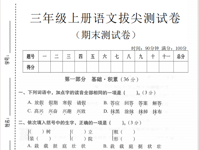 【小学语文】25秋三年级(上)语文期末拔尖测试卷4