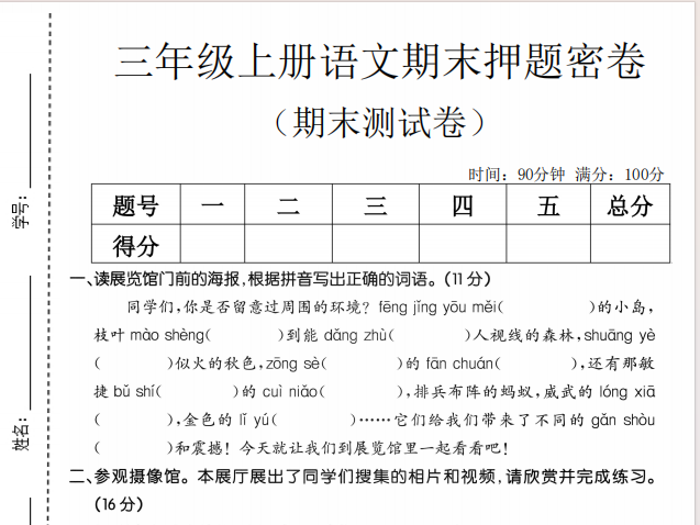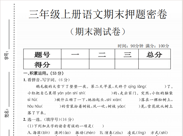 【小学语文】25秋三年级(上)语文期末押题测试卷3