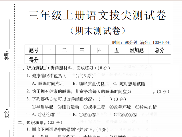 【小学语文】25秋三年级(上)语文期末拔尖测试卷3