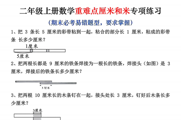 【小学数学】25秋二上数学重难点厘米和米应用题易错专项练习(含答案10页)