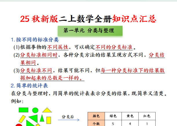 【小学数学】25秋新二上数学全册知识点+高频考点+综合练习(全册1-5单元)45页