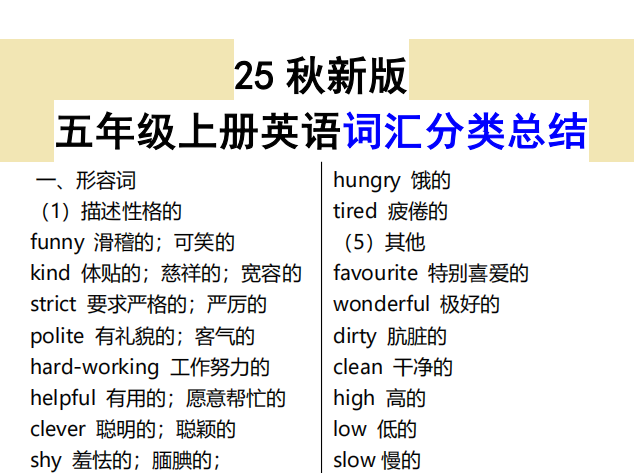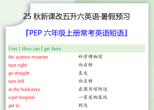 【小学英语】25秋新六上小学六年级英语(上册)知识归纳|人教版