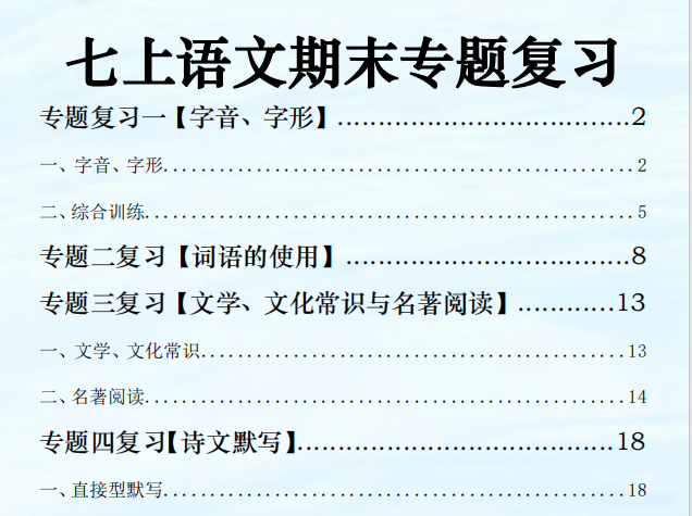 【初中语文】25秋七年级(上)语文语文期末专题复习