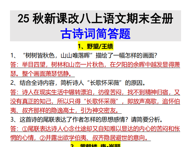 【初中语文】25秋八年级(上)语文期末模拟卷02